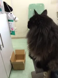 さすがに普段ヒマな我が院でも今は繁忙期なのでなかなか更新できずにいました。何人読者がいるかはわかりませんが。ここ最近のブログを見返してみて、動物病院のブログなのに、かわいげが足りない!事に気付きました。したがって少しかわいげのあるブログにしたいと思います。画像左上は我が院の主、クロさんです。HPにも書いてありますが、埼玉で勤めていた時に交通事故で瀕死だったのが、みるみる元気になったので、引き取らせてもらった子です。院長に無くてはならない程の癒しになっています。奴はダンボールが大好きで、隙をみてはダンボールに入ろうとします。そこで、クロさんが日頃入っているダンボールを本人が気付かないうちに少しずつ小さくします。すると、「あれ?なんか小さくなってる?でも入れるはず!」的な事を考えているかどうかはわかりませんが、無理矢理入ってかなりはみ出ているのに満足気になっているのを見ると、面白くなって調子に乗ってどんどんダンボールを小さくしていくと、最終的には入ってくれないクロさんなんですよ。