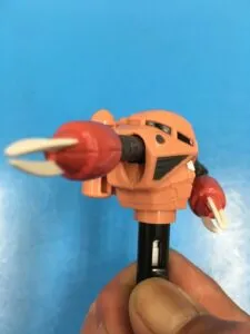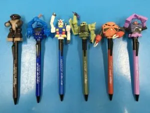 中でも私のお気に入りは、画像中のシャア専用ズゴックです!ボールペンの芯を出すと、画像右のように劇中の名シーンのアクションをします!ただ、この手のボールペンって大抵書き味が悪いんですよね〜。なので、早速お気に入りボールペンの替え芯に変えちゃおうと思って分解しているところです。