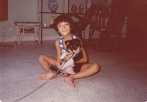 画像左は私のルーツともいえる一枚です。当時「噂の刑事トミーとマツ」とか言うようなドラマがやってまして、我が家の皆は国広富之さんのファンだったもので、そこから名前を頂いたシェットランドシープドッグの「トミー」との一枚です。この犬が私にとって初めての犬で、この頃から何となく獣医さん?になりたいかも?みたいなことを考えていたように思います。